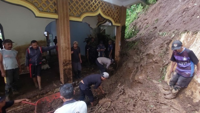 Karena waktu sudah gelap dan di lokasi terus turun hujan, sehingga pembersihan dihentikan dan dilanjutkan hari ini.